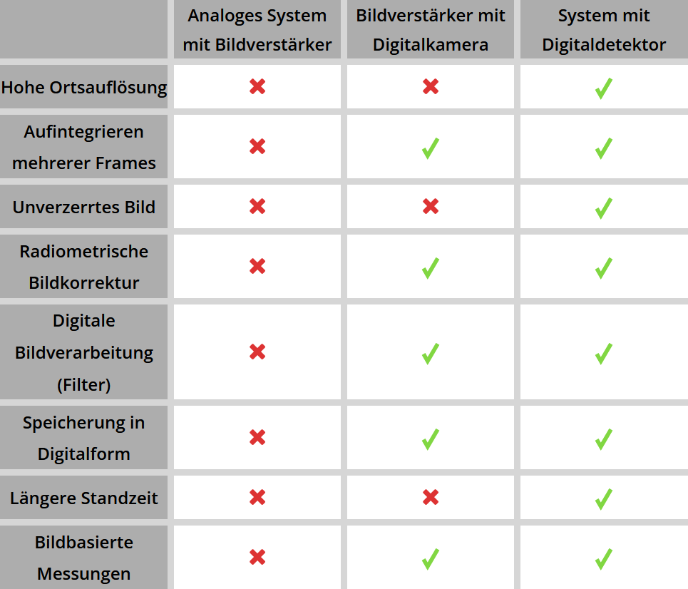 Radioskopie ist eine viel verwendete Prüfmethode der Durchstrahlungsprüfung. Moderne Digitaldetektoren bieten hierbei zahlreiche Vorteile bezüglich Bildqualität und Handling von Bildern gegenüber den bisher viel verwendeten Television-Systemen mit Bildverstärkern. Dank der Geräteherstellerunabhängigkeit von Vision in X und der Unterstützung einer großen Anzahl von Röntgenanlagen und Digitaldetektoren durch unsere Software ISee! Professional können wir die Umrüstung auf Digitaldetektoren für Sie aufgabenoptimiert und kostengünstig realisieren.
